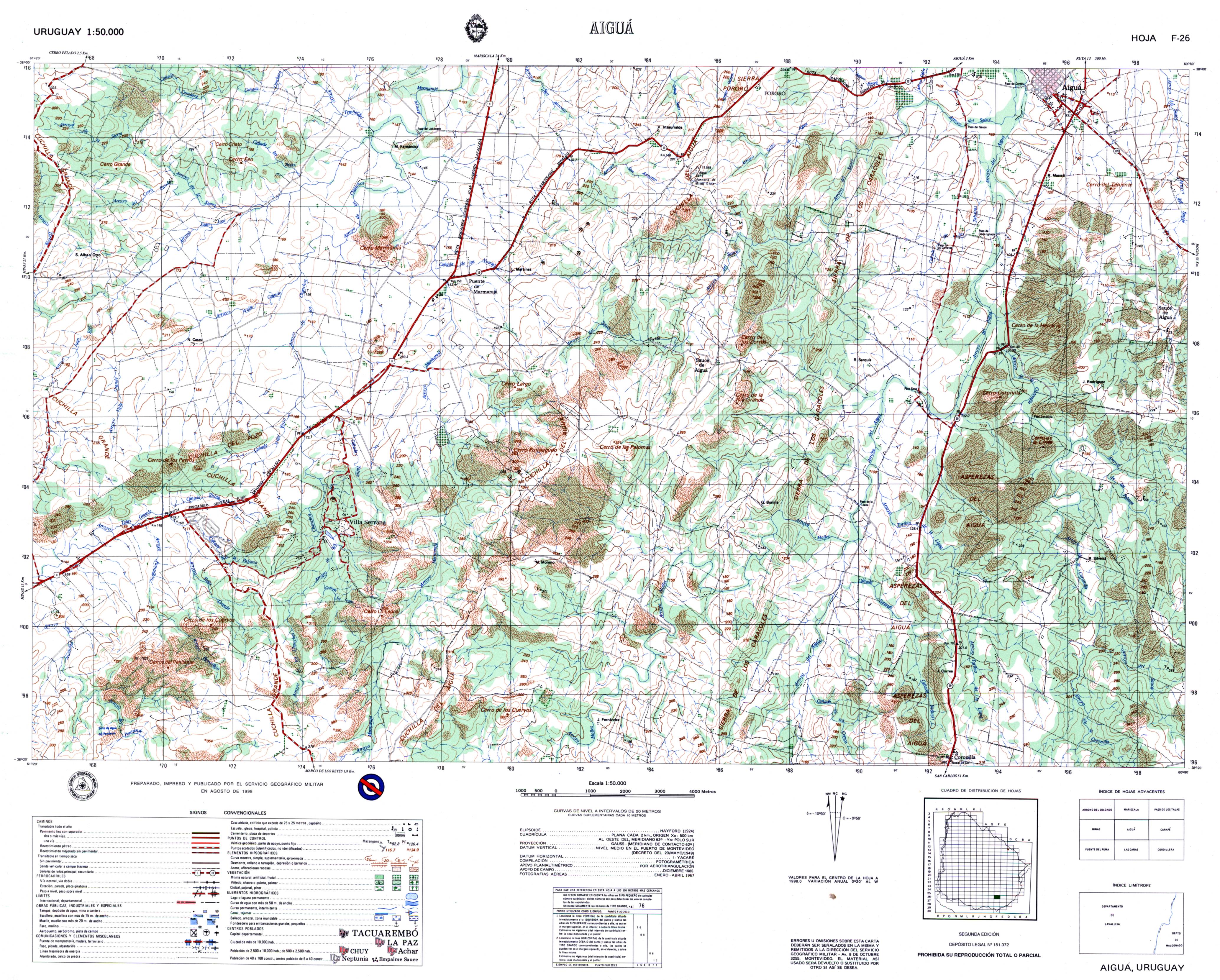 TÃtulo : Aceguá. Carta 1:50.000 Tipo de documento: documento cartográfico impreso Autores: Uruguay. Servicio Geográfico Militar, Autor Editorial: Montevideo: Servicio Geográfico Militar Fecha de publicación: 1983 Il.: 76 x 59 cm. Nota general: Código local D13 Idioma : Español (spa) Palabras clave: Aceguá, Cerro Largo, Uruguay, CAMINOS, FERROCARRIL, OBRAS PUBLICAS, RELIEVE, HIDROGRAFIA, VEGETACION, POBLADOS Clasificación: 918.5 Aceguá. Carta 1:50.000 [documento cartográfico impreso] / Uruguay. Servicio Geográfico Militar, Autor . - Montevideo: Servicio Geográfico Militar, 1983 . - : 76 x 59 cm.