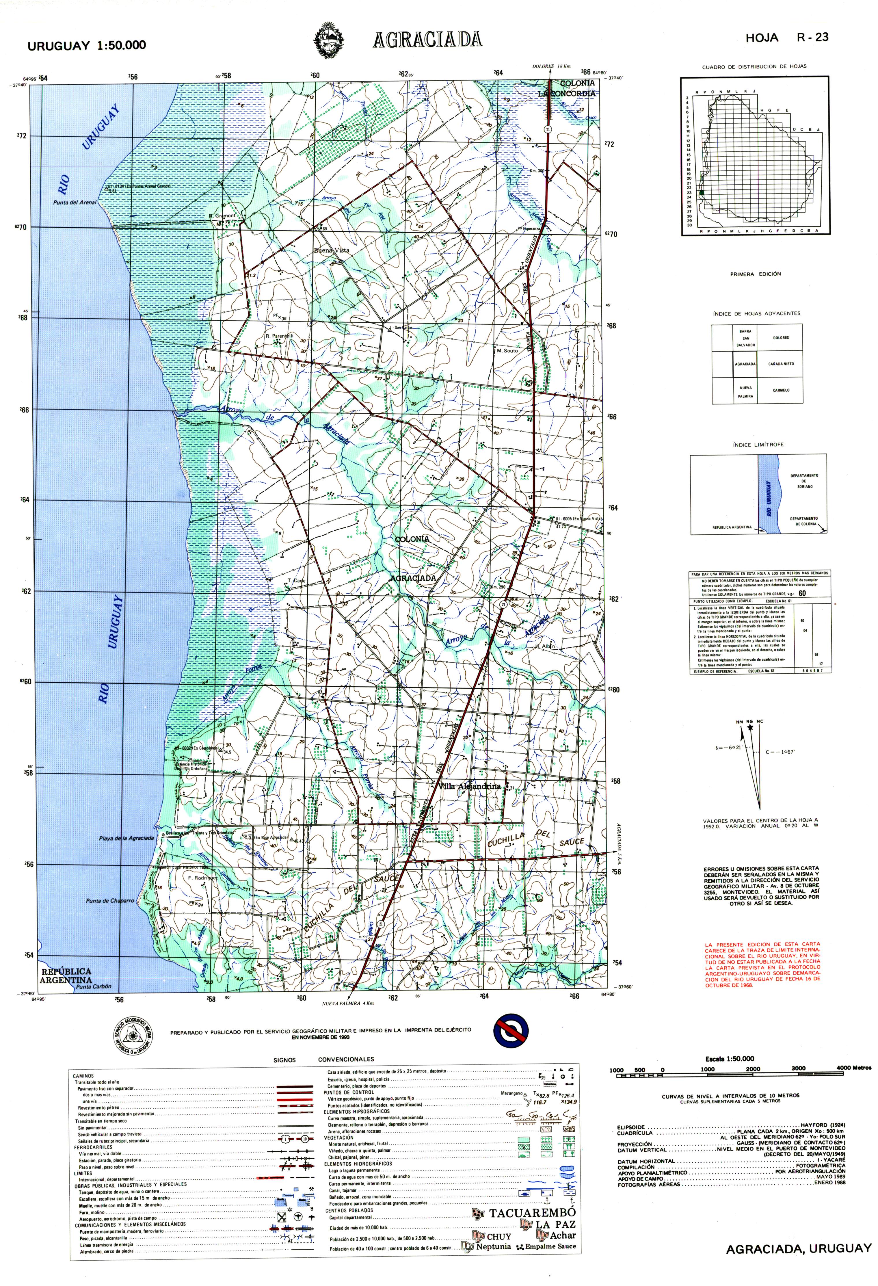 TÃtulo : Agraciada. Carta 1:50.000 Tipo de documento: documento cartográfico impreso Autores: Uruguay. Servicio Geográfico Militar, Autor Mención de edición: 1 Editorial: Montevideo: Servicio Geográfico Militar Fecha de publicación: 1993 Il.: 40 x 58 cm. Nota general: Código local R-23 Idioma : Español (spa) Palabras clave: Agraciada, Soriano, Uruguay, CAMINOS, FERROCARRIL, OBRAS PUBLICAS, RELIEVE, HIDROGRAFIA, VEGETACION, POBLADOS Clasificación: 918.5 Agraciada. Carta 1:50.000 [documento cartográfico impreso] / Uruguay. Servicio Geográfico Militar, Autor . - 1 . - Montevideo: Servicio Geográfico Militar, 1993 . - : 40 x 58 cm.