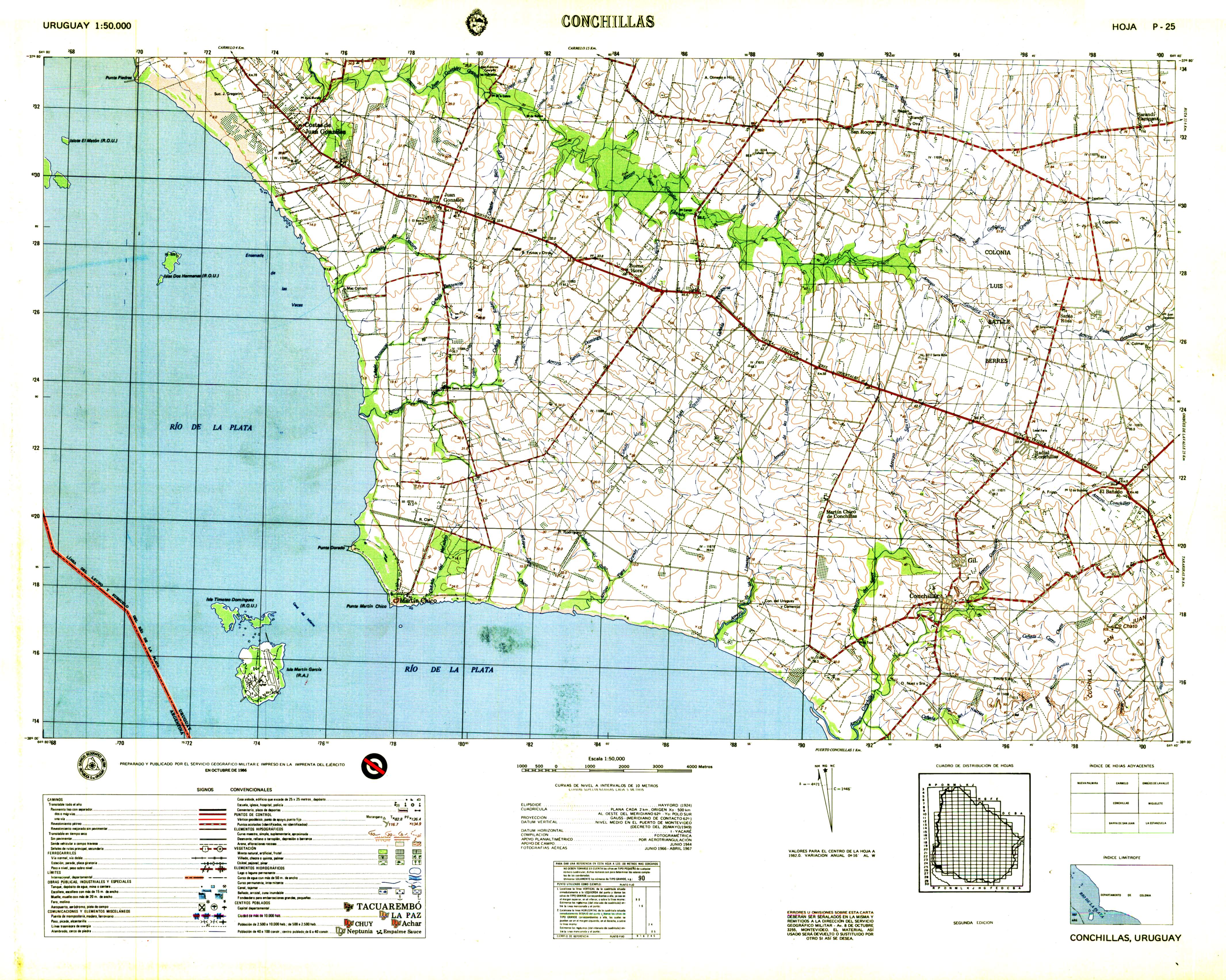 TÃtulo : Canelones. Carta 1:25.000 Tipo de documento: documento cartográfico impreso Autores: Uruguay. Servicio Geográfico Militar, Autor Mención de edición: 1 Editorial: Montevideo: Servicio Geográfico Militar Fecha de publicación: 1989 Il.: 76 x 59 cm. Nota general: Código local K-27 d Idioma : Español (spa) Palabras clave: Canelones, Uruguay, Isla, CAMINOS, FERROCARRIL, OBRAS PUBLICAS, RELIEVE, HIDROGRAFIA, VEGETACION, POBLADOS Clasificación: 918.5 Canelones. Carta 1:25.000 [documento cartográfico impreso] / Uruguay. Servicio Geográfico Militar, Autor . - 1 . - Montevideo: Servicio Geográfico Militar, 1989 . - : 76 x 59 cm.