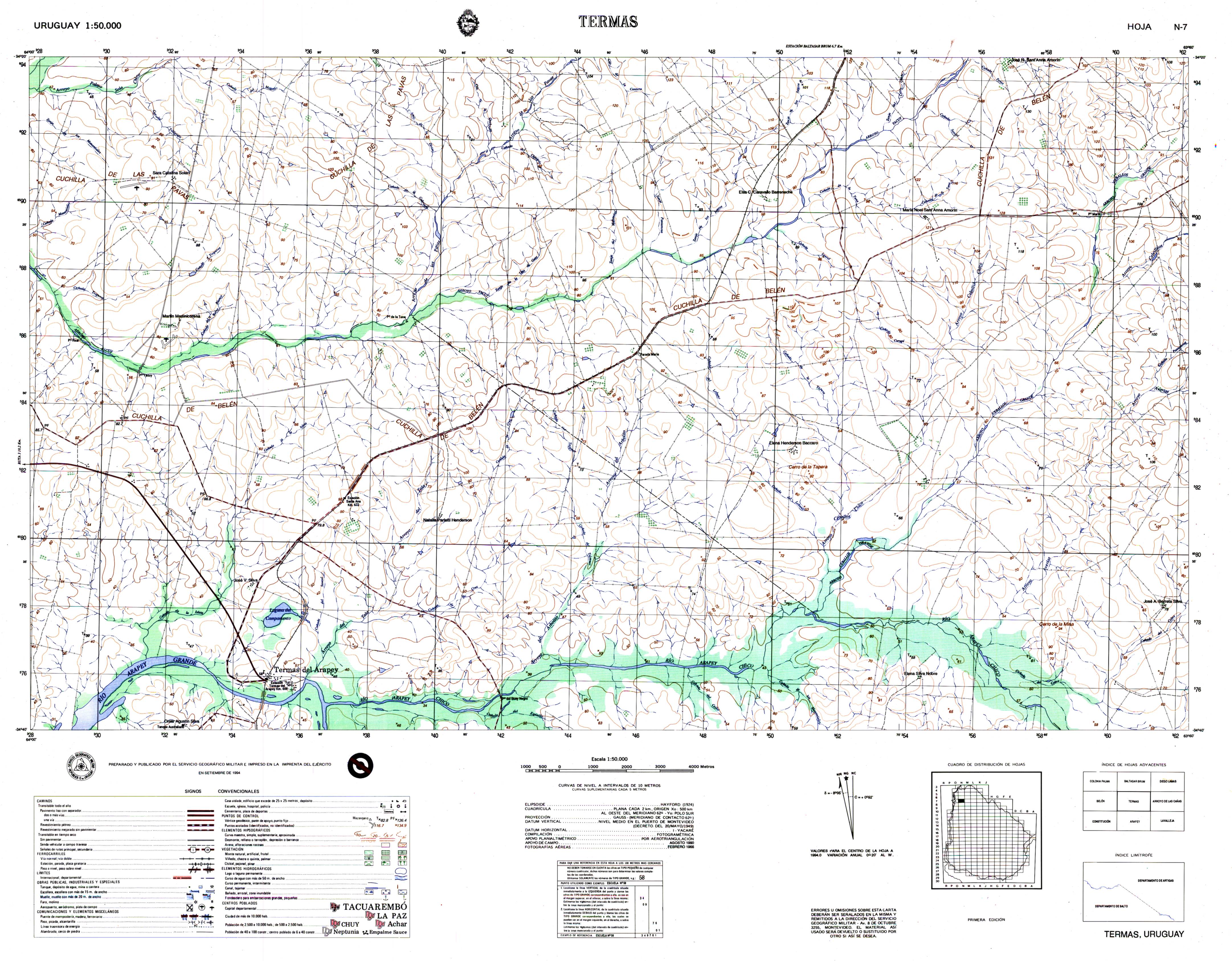 TÃtulo : Termas. Carta 1:50.000 Tipo de documento: documento cartográfico impreso Autores: Uruguay. Servicio Geográfico Militar, Autor Mención de edición: 1 Editorial: Montevideo: Servicio Geográfico Militar Fecha de publicación: 1994 Il.: 76 x 58 cm. Nota general: Código local N-7 Idioma : Español (spa) Palabras clave: Termas, Salto, Uruguay, CAMINOS, FERROCARRIL, OBRAS PUBLICAS, RELIEVE, HIDROGRAFIA, VEGETACION, POBLADOS Clasificación: 918.5 Termas. Carta 1:50.000 [documento cartográfico impreso] / Uruguay. Servicio Geográfico Militar, Autor . - 1 . - Montevideo: Servicio Geográfico Militar, 1994 . - : 76 x 58 cm.