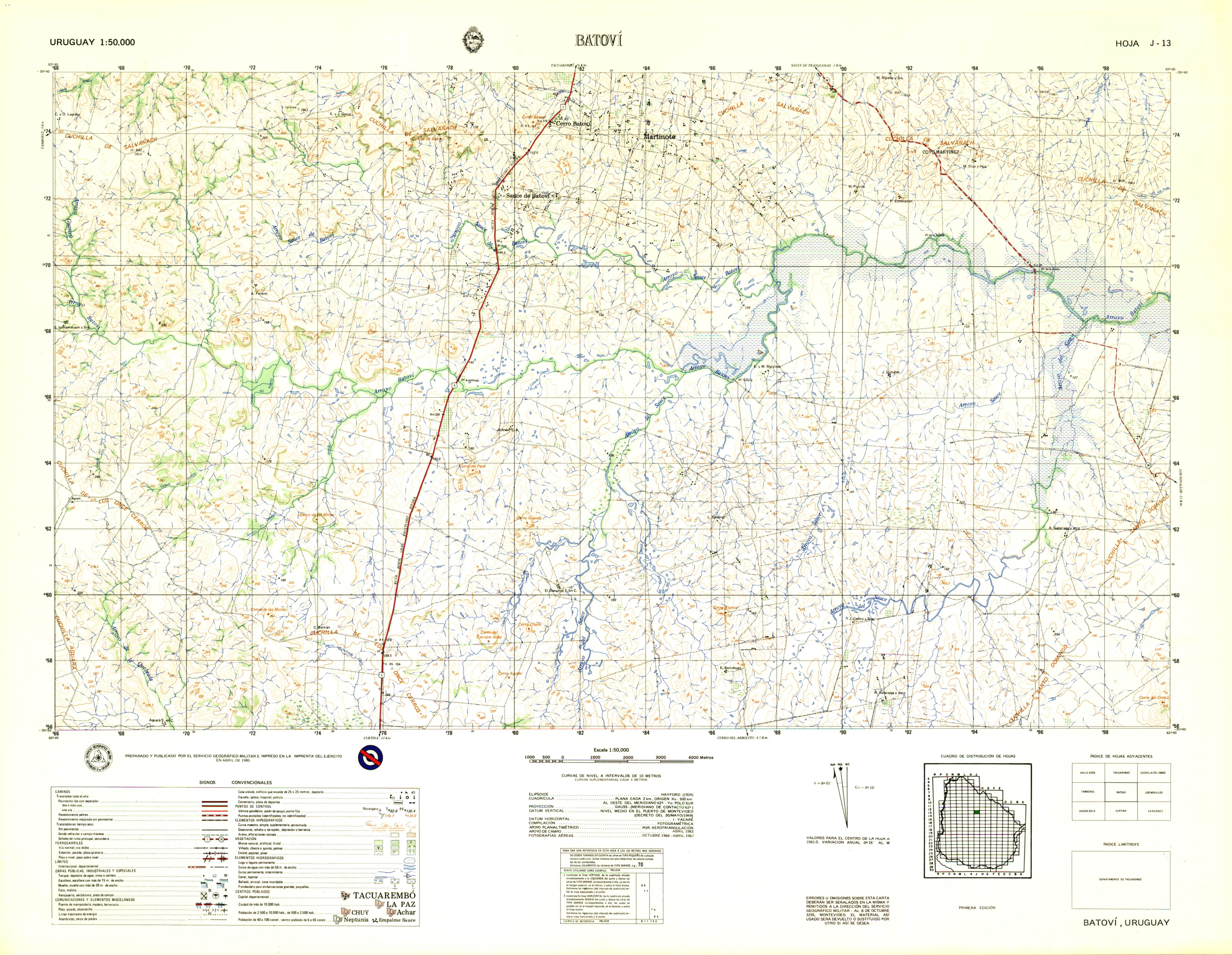 TÃtulo : BatovÃ. Carta 1:50.000 Tipo de documento: documento cartográfico impreso Autores: Uruguay. Servicio Geográfico Militar, Autor Mención de edición: 1 Editorial: Montevideo: Servicio Geográfico Militar Fecha de publicación: 1985 Il.: 75 x 58 cm. Nota general: Código local J-13 Idioma : Español (spa) Palabras clave: BatovÃ, Tacuarembó, Uruguay, Cerro, CAMINOS, FERROCARRIL, OBRAS PUBLICAS, RELIEVE, HIDROGRAFIA, VEGETACION, POBLADOS Clasificación: 918.5 BatovÃ. Carta 1:50.000 [documento cartográfico impreso] / Uruguay. Servicio Geográfico Militar, Autor . - 1 . - Montevideo: Servicio Geográfico Militar, 1985 . - : 75 x 58 cm.