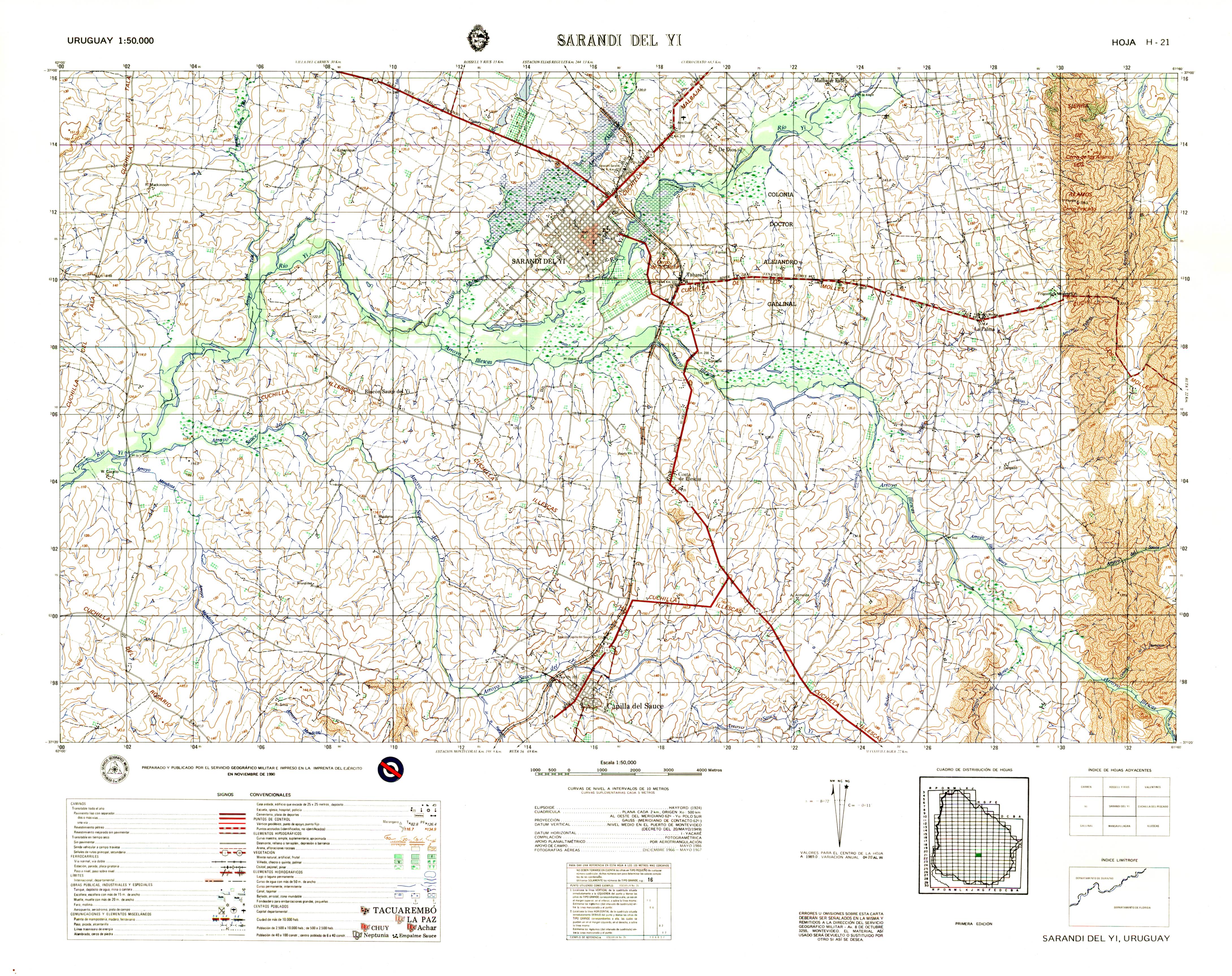 Título : Sarandí del Yí. Carta 1:50.000 Tipo de documento: documento cartográfico impreso Autores: Uruguay. Servicio Geográfico Militar, Autor Editorial: Montevideo: Servicio Geográfico Militar Fecha de publicación: 1990 Il.: 74 x 59 cm. Nota general: Código local H-21 Idioma : Español (spa) Palabras clave: Sarandí del Yí, Durazno, Uruguay, CAMINOS, FERROCARRIL, OBRAS PUBLICAS, RELIEVE, HIDROGRAFIA, VEGETACION, POBLADOS Clasificación: 918.5 Sarandí del Yí. Carta 1:50.000 [documento cartográfico impreso] / Uruguay. Servicio Geográfico Militar, Autor . - Montevideo: Servicio Geográfico Militar, 1990 . - : 74 x 59 cm.