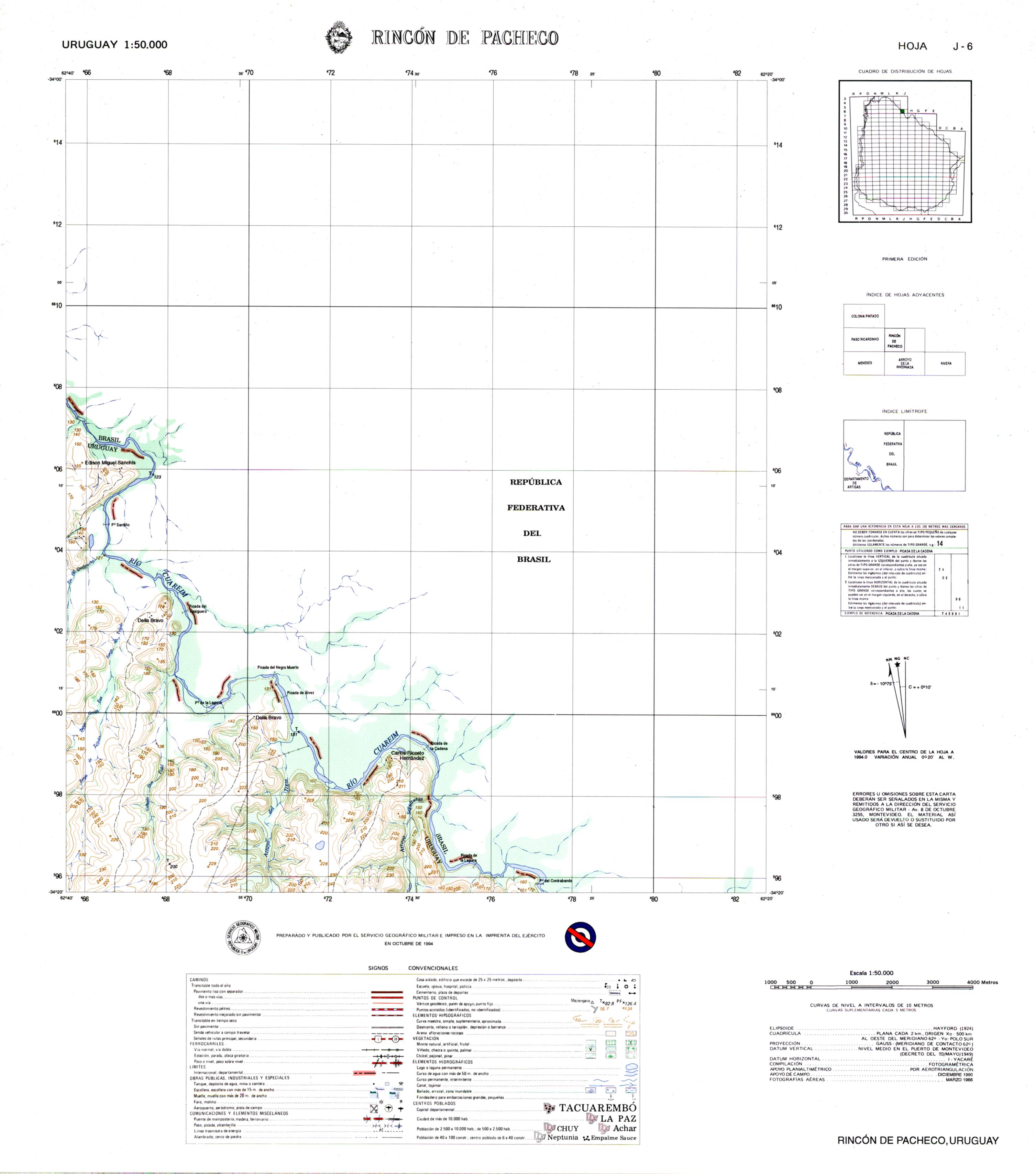Título : Rincón de Pacheco. Carta 1:50.000 Tipo de documento: documento cartográfico impreso Autores: Uruguay. Servicio Geográfico Militar, Autor Mención de edición: 1 Editorial: Montevideo: Servicio Geográfico Militar Fecha de publicación: 1994 Il.: 51 x 58 cm. Nota general: Código local J-6 Idioma : Español (spa) Palabras clave: Rincón de Pacheco, Artigas, Uruguay, CAMINOS, FERROCARRIL, OBRAS PUBLICAS, RELIEVE, HIDROGRAFIA, VEGETACION, POBLADOS Clasificación: 918.5 Rincón de Pacheco. Carta 1:50.000 [documento cartográfico impreso] / Uruguay. Servicio Geográfico Militar, Autor . - 1 . - Montevideo: Servicio Geográfico Militar, 1994 . - : 51 x 58 cm.