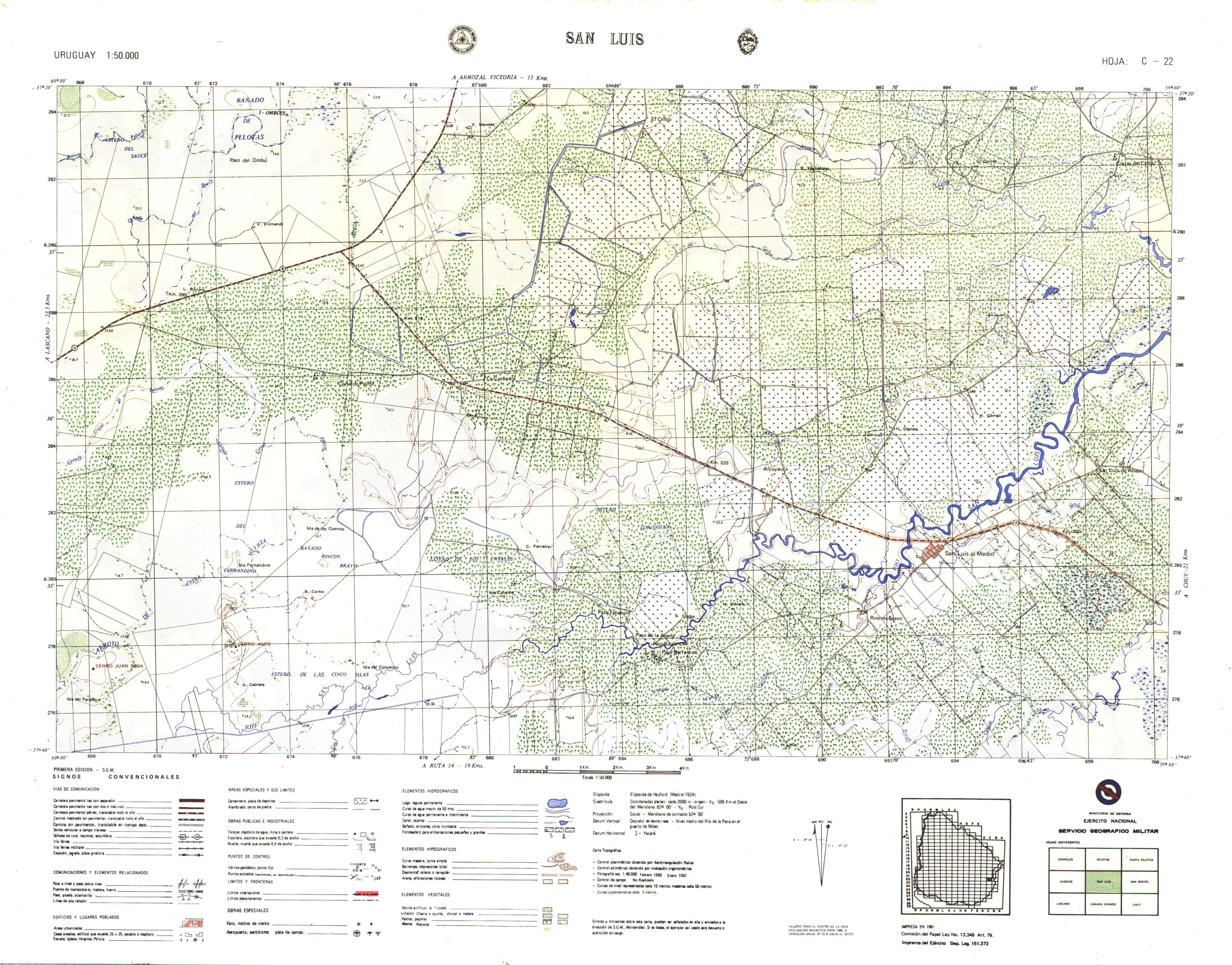 Palabras clave: San Martín, Soriano, Uruguay, CAMINOS, FERROCARRIL, OBRAS PUBLICAS, RELIEVE, HIDROGRAFIA, VEGETACION, POBLADOS Clasificación: 918.5 En línea: http://web.sgm.gub.uy/geoportal/index.php/mapas/descargas/cartografia/pcn150000 Reserva
