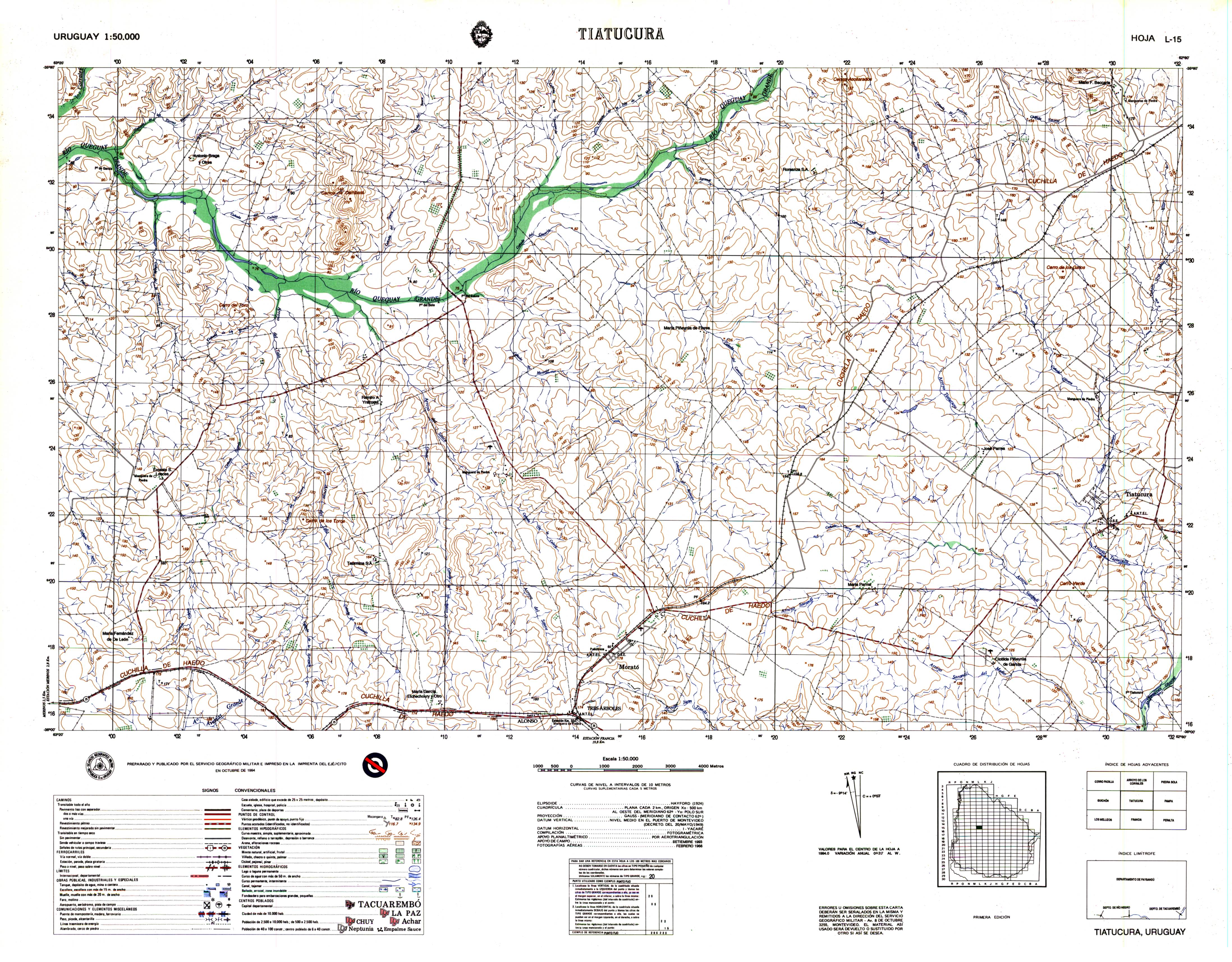 TÃtulo : Tiatucura. Carta 1:50.000 Tipo de documento: documento cartográfico impreso Autores: Uruguay. Servicio Geográfico Militar, Autor Mención de edición: 1 Editorial: Montevideo: Servicio Geográfico Militar Fecha de publicación: 1994 Il.: 75 x 58 cm. Nota general: Código local L-15 Idioma : Español (spa) Palabras clave: Tiatucura, Paysandú, CAMINOS, FERROCARRIL, OBRAS PUBLICAS, RELIEVE, HIDROGRAFIA, VEGETACION, POBLADOS Clasificación: 918.5 Tiatucura. Carta 1:50.000 [documento cartográfico impreso] / Uruguay. Servicio Geográfico Militar, Autor . - 1 . - Montevideo: Servicio Geográfico Militar, 1994 . - : 75 x 58 cm.